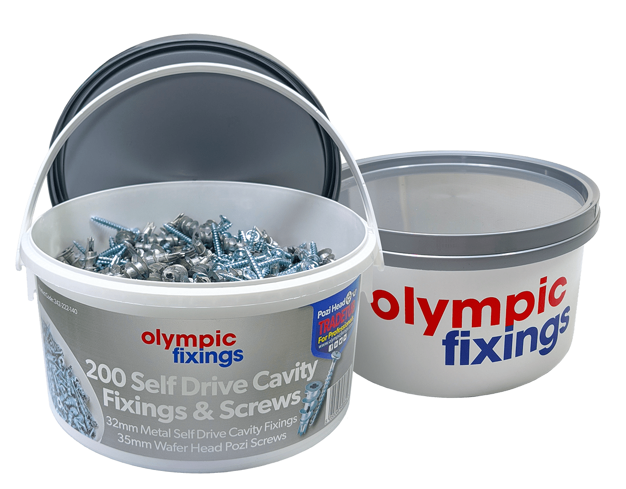 Self Drive With Screw Tub contains 200 cavity fixings and screws, neatly stored in a durable tub. Designed for all trades, it ensures your fixings stay safe on the job.